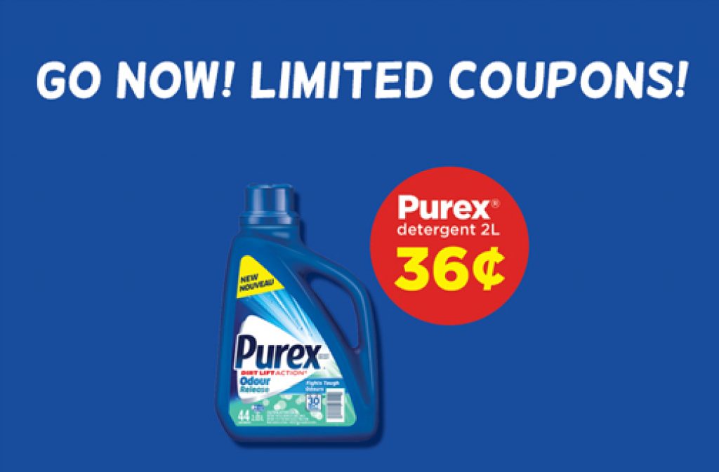 Claim your coupon and get Purex Odour Release Detergent 44WL (2.03L) for only 36 cents!!