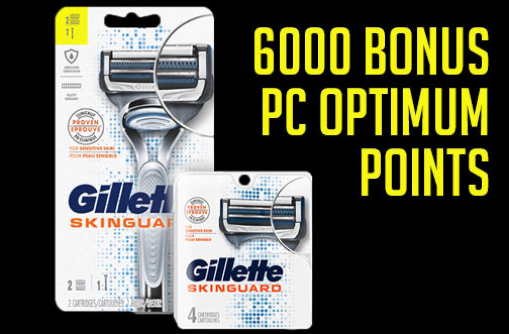 For a limited time, you can load a special PC Optimum Bonus Offer and get 6000 Bonus PC Optimum Points when you purchase any Gillette Skinguard Razor or blades.