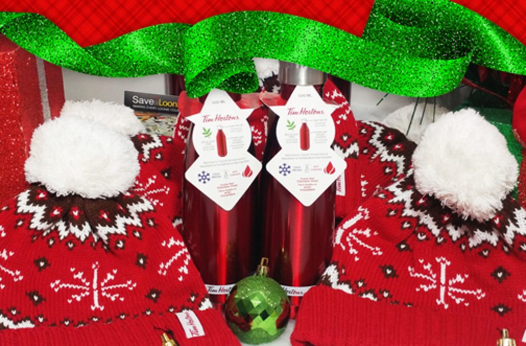 Each Gift Set includes a Red Tim Hortons Insulated Hot/Cold Bottle & Tim Hortons Toque.
