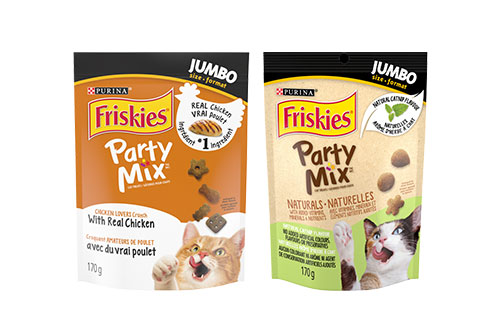 Friskies Party Mix Cat Treats come in a variety of yummy flavours that will make your cat go me-WOW!