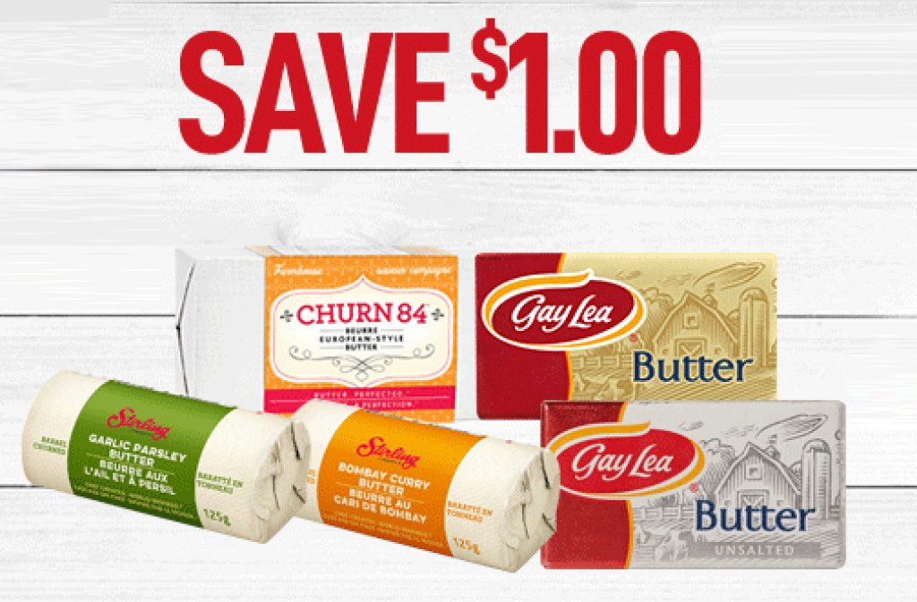 Within the email is a link to claim a Canadian Coupon for $1 off any Gay Lea butter, Stirling or Churn 84 Product.