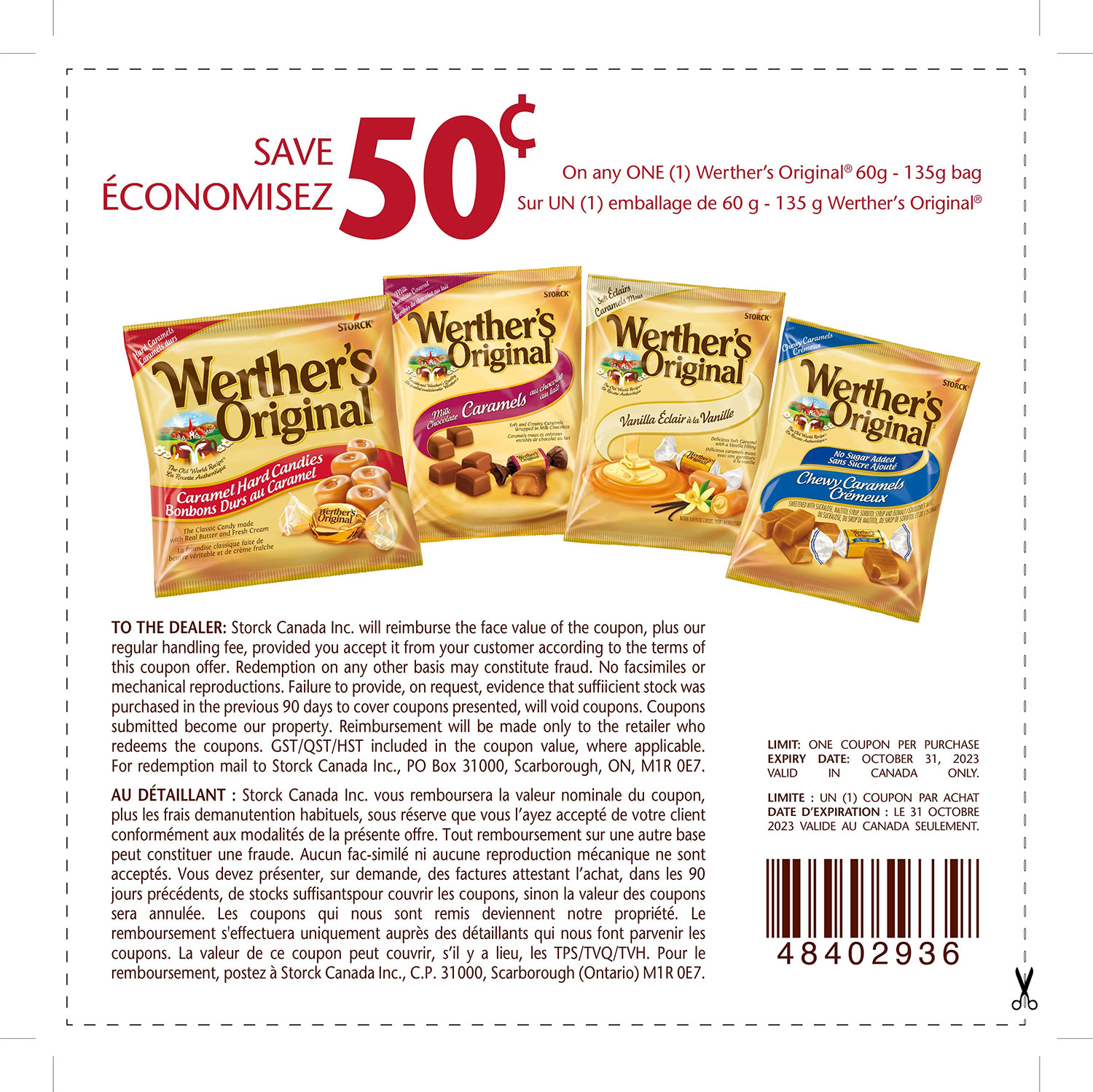 Claim your coupon and save $0.50 off the purchase of any one Werther’s Original 60g-135g bag.