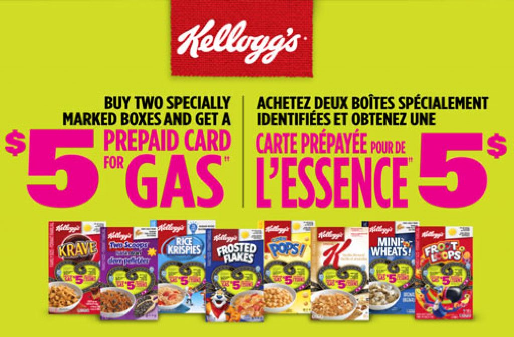 To participate, purchase 2 specially marked Kellogg’s cereals, in a single transaction, between February 20 through May 30, 2020. Snap a photo of your receipt and upload it to claim a $5 Prepaid Gas Card.
