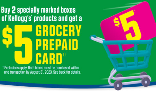 - Purchase TWO specially marked Kellogg’s Cereal products in a single transaction on or before January 31, 2026