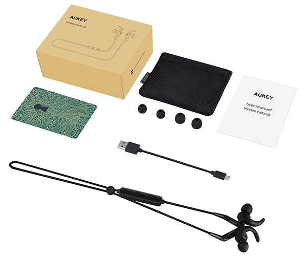 - Package Contents: AUKEY EP-E7 Wireless Earbuds, Micro-USB Cable, Three Pairs of Ear-Tips, Carrying Pouch, User Manual, 45-Day Money Back Guarantee and 24-Month Product Replacement Warranty Card