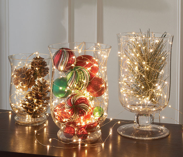 These lights are waterproof but the bulbs stay cool to the touch so they are perfect for either indoor or outdoor use. A few ideas I thought these would be perfect for would be decorating a mantle, around a window, in a child’s room, in a vase or bowl with Christmas Bulbs or in an empty wine bottle.