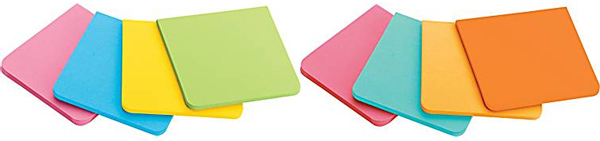 Remember those boring old, run of the mill, canary yellow Post-it notes? Cast that memory far away and introduce yourself to the bold and fun new colours of Post-it Full Adhesive Notes! These bright, eye catching colours will surely remind you of whatever it is you wrote down! If you still prefer the standard yellow, have no fear! You can get those too!