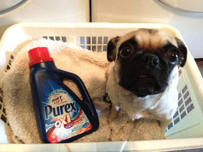 I received my Henkel Insiders Pack early on a Friday morning hand delivery by Canada Post. Not even 30 minutes after I discovered the Purex Pack on our front porch, did one of our lovely pups jump on my WHITE bed sheets with their MUDDY paws. I’m not sure which one it was however, I’m looking more in Ella’s direction. They were awfully small prints and she just “seemed” guilty.