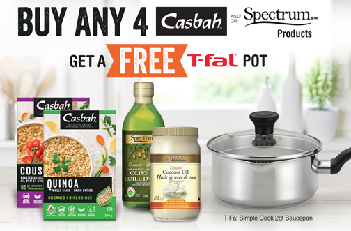 Purchase any 4 Casbah and/or Spectrum Products (does NOT have to be in a single transaction) between June 15th and September 15th 2018 and upload your receipt(s) to claim your FREE T-Fal Simple Cook 2qt Saucepan!