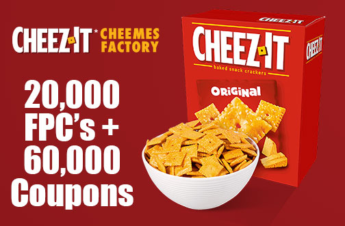 The first 20,000 participants to submit a Cheez-It Cheeme will receive a coupon for a FREE BOX of Cheez-It Crackers (191-200g).