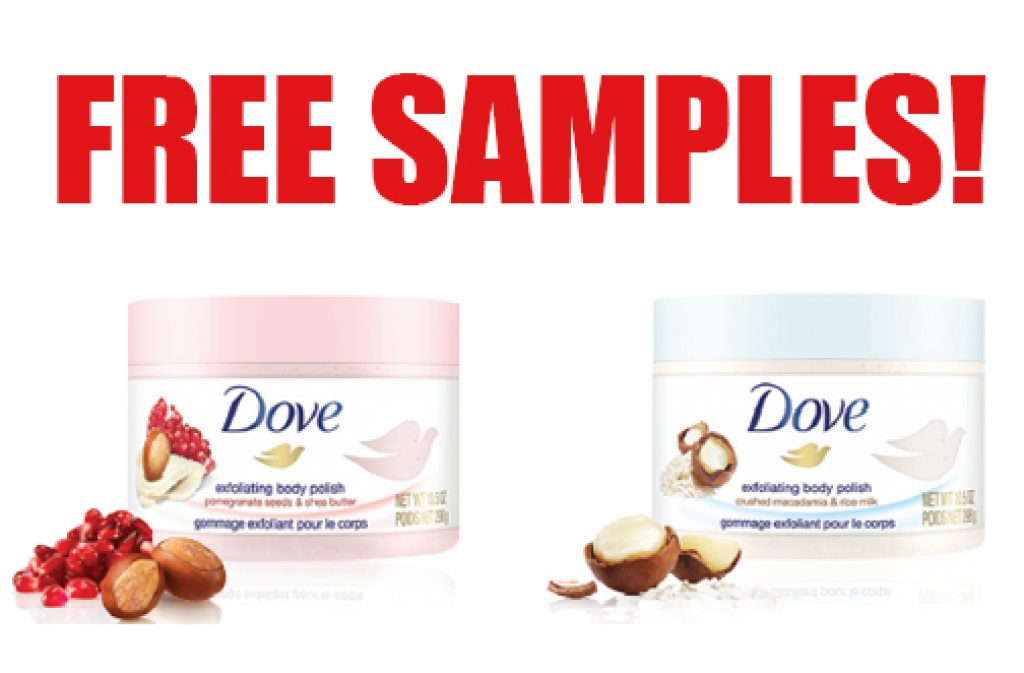 For a limited time only, you can sign up and claim a FREE SAMPLE of Dove Body Polish!