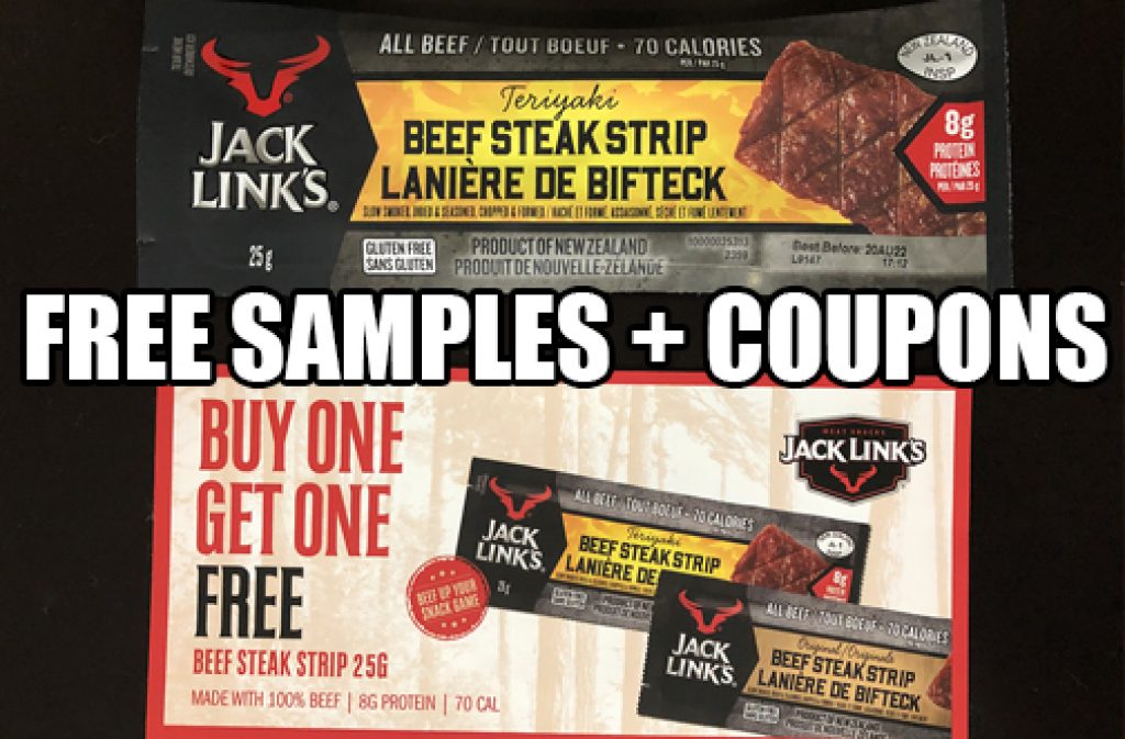 Stop into your local The Beer Store and pick up a Free Full-Size Jack Link’s Beef Strip Sample as well as a BOGO Free Jack Link’s Beef Strip 25g coupon.
