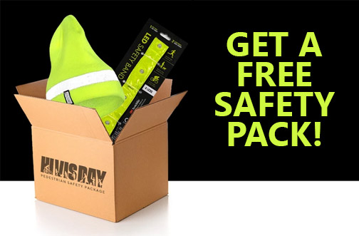 Sign up to claim your package which includes a toque and LED Safety Band! Make sure to use Promo Code HIVISDAY at checkout for Free Shipping!