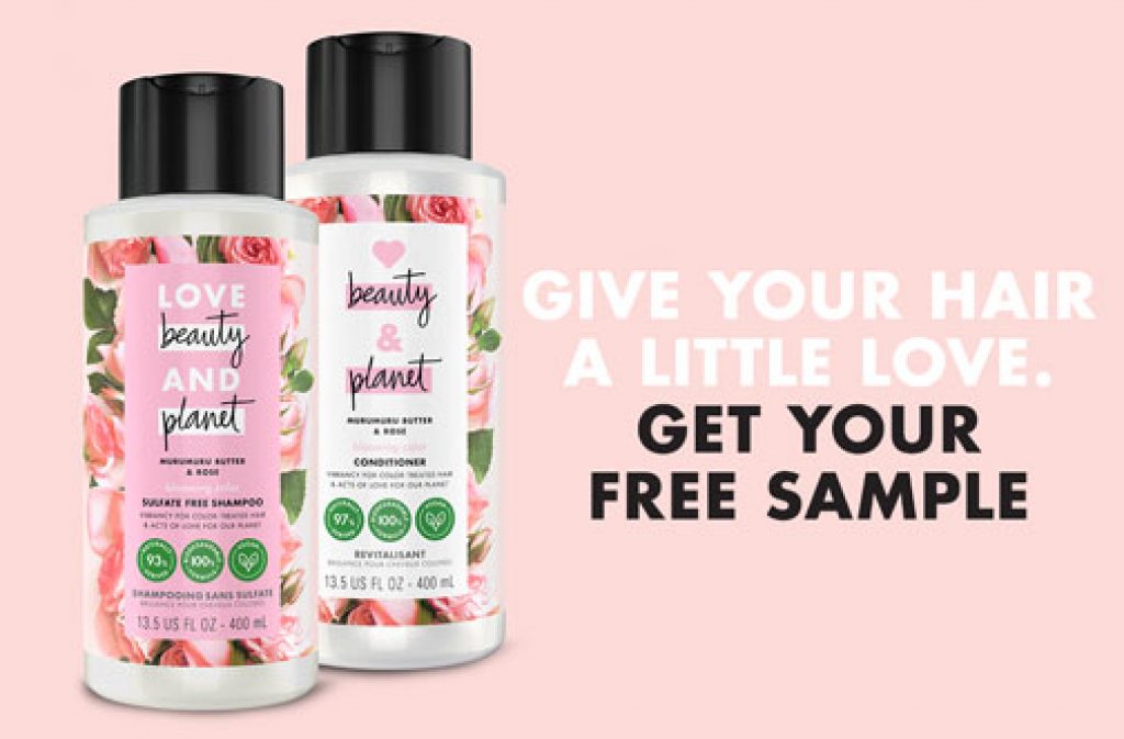 For a limited time, you can sign up to receive a FREE SAMPLE of Love Beauty and Planet Shampoo and Conditioner.