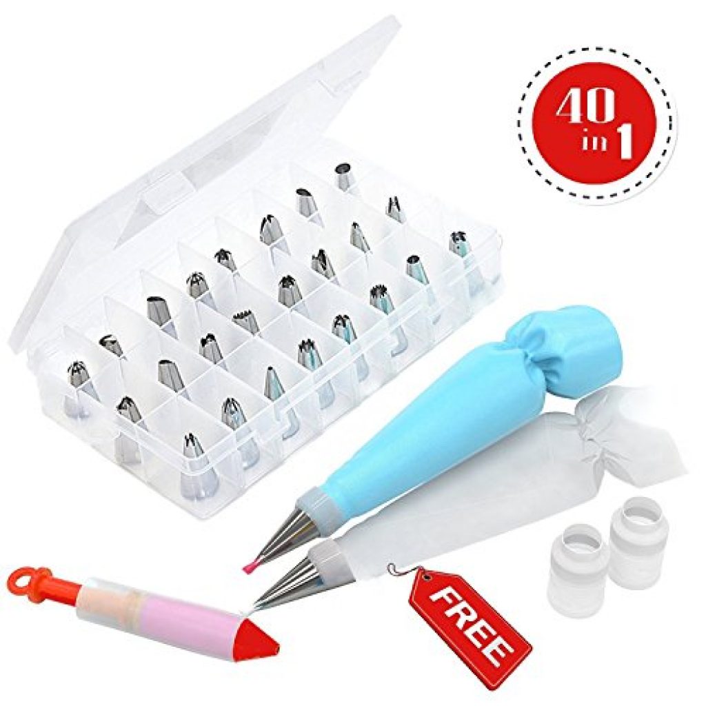 40 in 1 Cake Decorating Supplies include 24 Pieces Professional Stainless Steel DIY Icing Tip Set