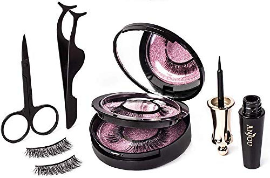 - 4-In-1 magnetic eyelashes & eyeliner set: 3 pairs of luscious eyelashes, double-layered eyelash storage box, eyeliner, a pair of scissors & lash applicator