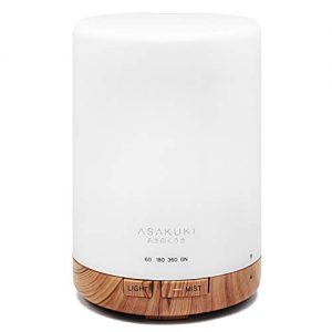 ASAKUKI 300ml Essential Oil Diffuser, Wood Grain Ultrasonic Cool Mist Aromatherapy Vaporizer Fragrant Humidifier, 3 Timers and Auto-Off Safety Switch, 7 LED Light Colors for Home Office