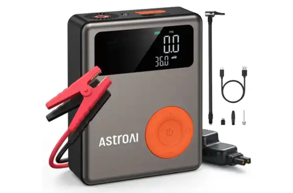 - 6-IN-1 MULTI-FUNCTION - The AstroAI Lithium portable jump starter for car battery includes 6 integrated functions. It's a car jump starter, air compressor, portable 12000mAh power bank and an LED flashlight with 3 modes (Stable, Strobe, SOS). This 6-in-1 multi-function tool is a must-have in any road trip kit.