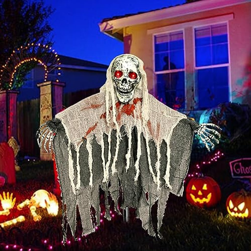 Creepy Skeleton with LED Light-up Eyes Shrilling Sound Motion Activated Halloween Decor Outdoor
