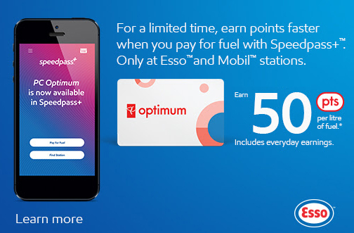 If you didn’t know, you can now earn 10 PC Optimum Points per litre at Esso & Mobil Gas Stations plus 10 points per dollar spent on car washes & eligible convenience store purchases.