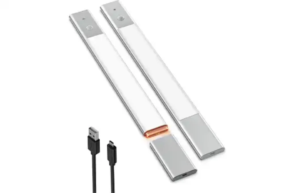 - 【Ultra-thin Design & Easy Installation】With a thickness of only 15mm, it features a slim design that fits easily under shelves, inside cabinets, or along closet frames. The built-in magnets allow it to attach securely to metal surfaces without tools. For non-metal surfaces, included adhesive iron plates make installation quick and reliable. No wiring, no drilling—just simple setup that works in any room: kitchen, bedroom, pantry, closet, hallway, or storage area.