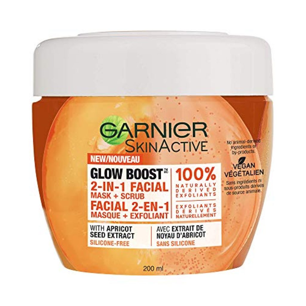 Garnier Skinactive Glow Boost 2-in-1 Facial Mask + Scrub Mask + Scrub With Apricot Seed Extract, Silicone-free, 200ml