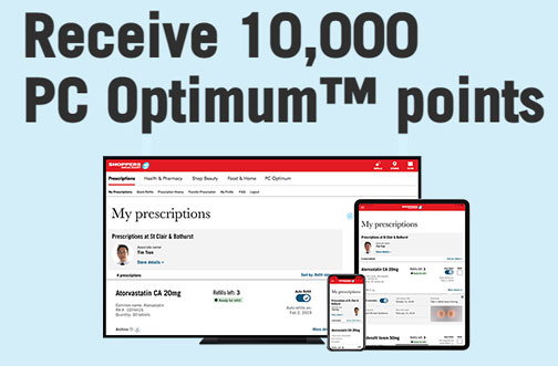 Sign up and verify your Online Pharmacy Account to receive 10,000 PC Optimum Bonus Points for Free!