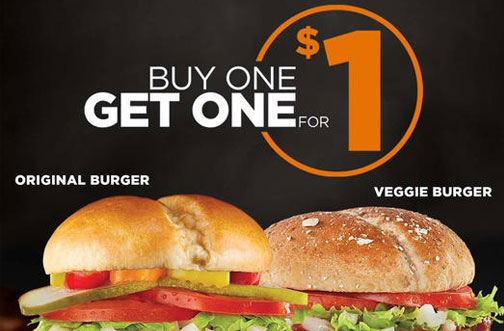 • $7.19 Original or Veggie Meal Deal (CODE: HAR002) Original or Veggie Burger, regular side & 20 oz Drink