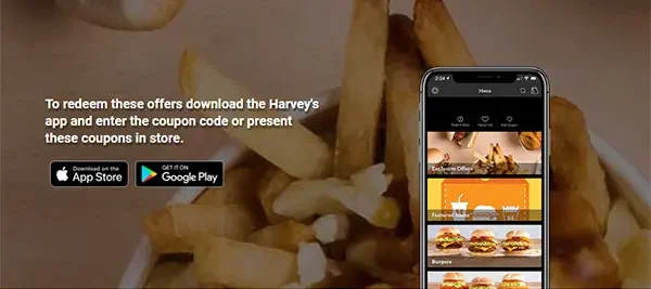 • Harveys Mobile App Download the Harveys app on your cell phone to access the digital coupons. You will need to show the coupon on your mobile device when ordering.