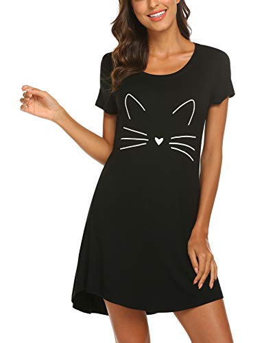 Hotouch Womens Cotton Night Shirt, Black Cat Ears