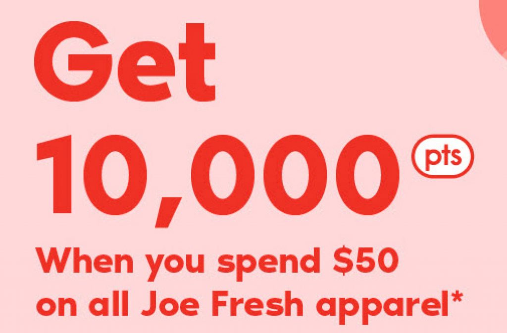 Get 10,00 Bonus PC Optimum Points when you spend $50 or more on all Joe Fresh Apparel.