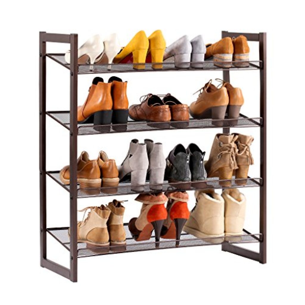LANGRIA 4-Tier Metal Shoes Rack Stackable Shoe Organizer