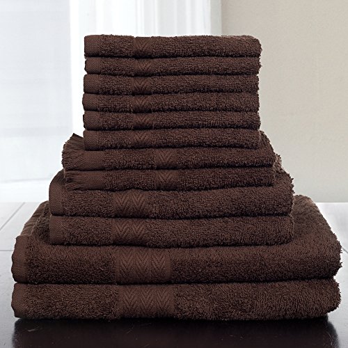 Lavish Home 12-Piece 100-Percent Cotton Towel Set, Chocolate