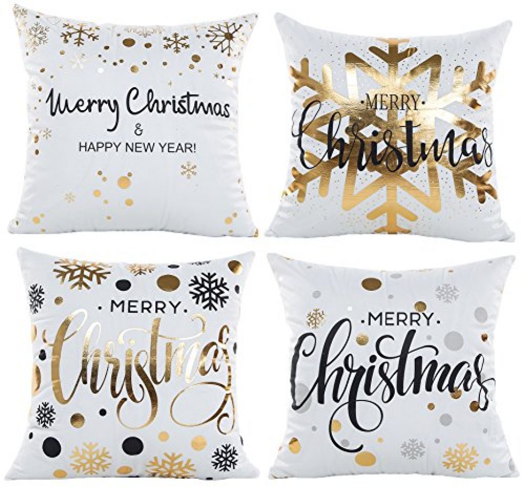 Merry Christmas Series Cotton Linen Decorative Throw Pillow Covers 18 Inch By 18 Inch (Gold Foil Xmas 4)