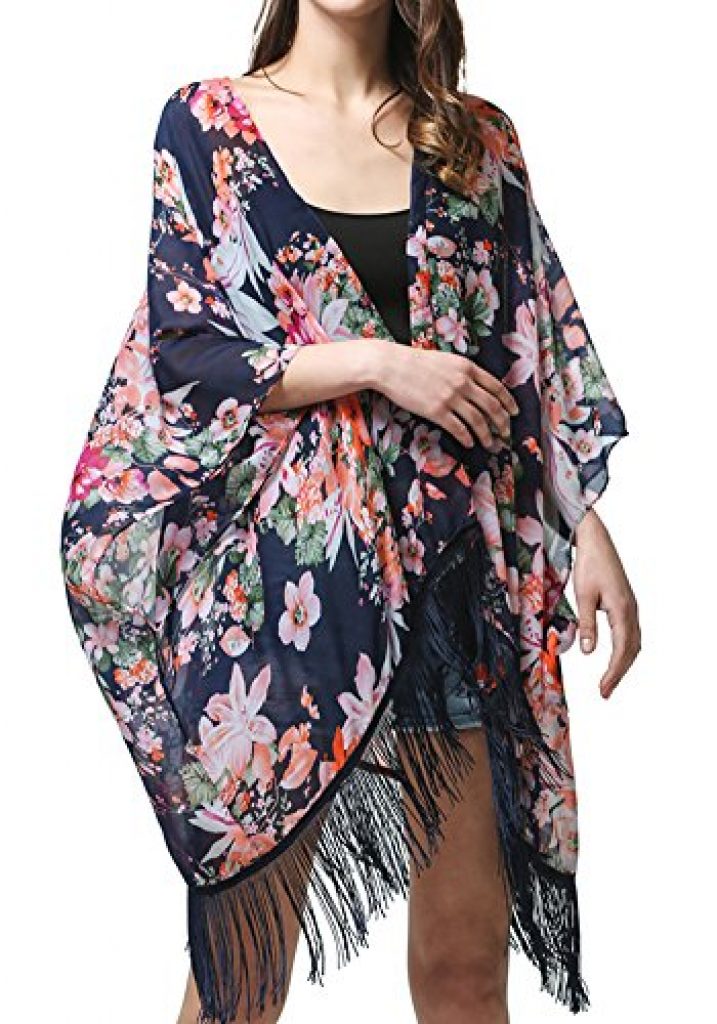 MissShorthair Women’s Light Floral Print Chiffon Kimono