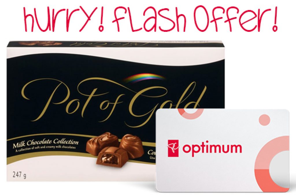 Check your PC Optimum App for a Shoppers Drug Mart Exclusive Flash Offer and get 7000 PC Optimum Bonus Points when you purchase 2 participating Pot of Gold Chocolate Collections.