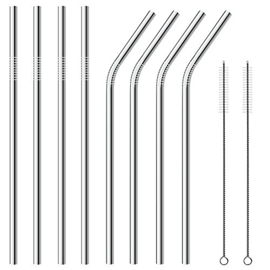 Stainless Steel Drinking Straws Set of 8 with 2 Cleaning Brushes