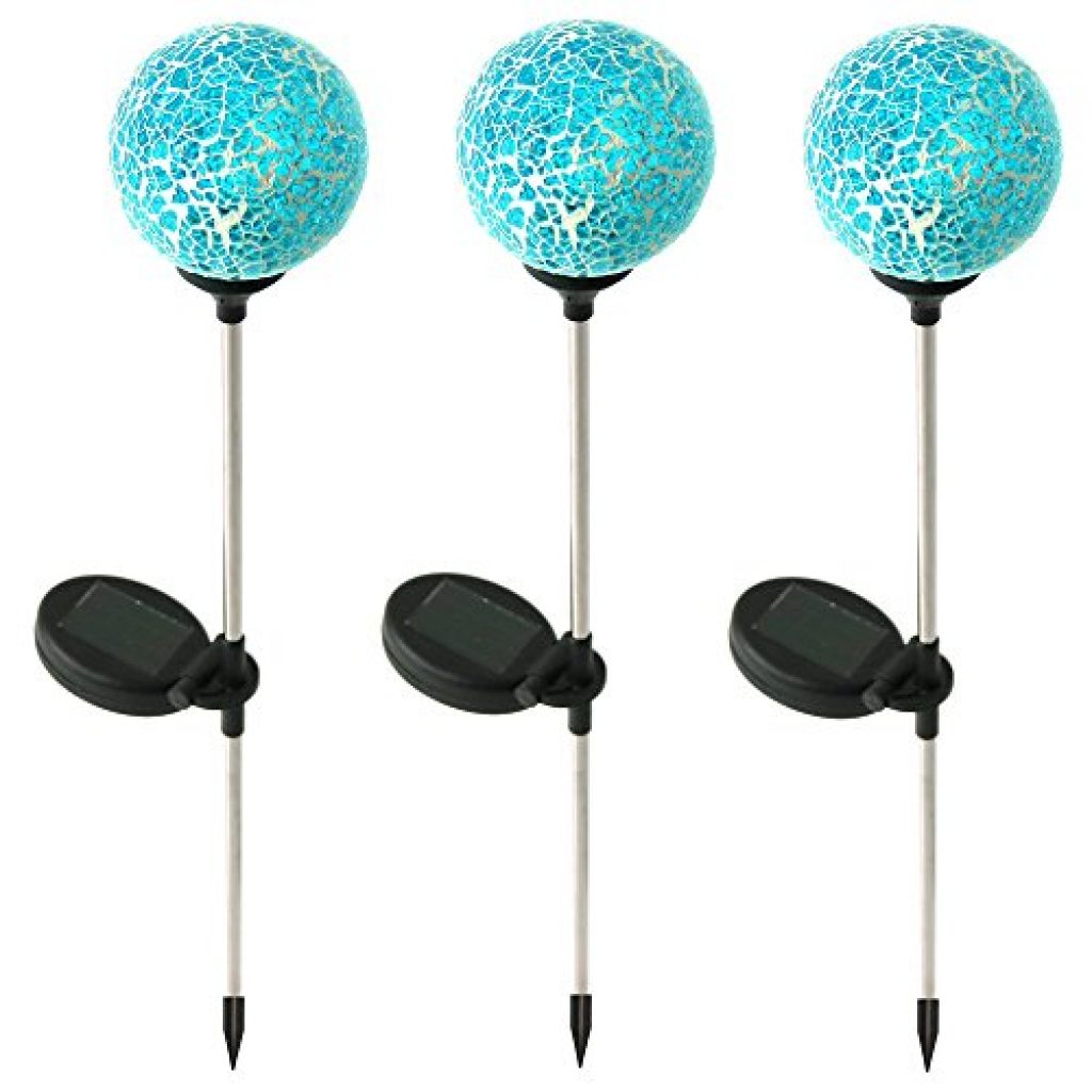 Sunnydaze Solar LED Mosaic Decorative Garden Glass Ball Light, Set of 3, Blue