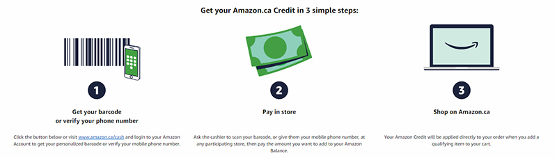 You can now visit over 13,000 locations across Canada and top up your Amazon account balance using cash. You can add cash as often as you want, or even maintain a balance, your funds never expire.