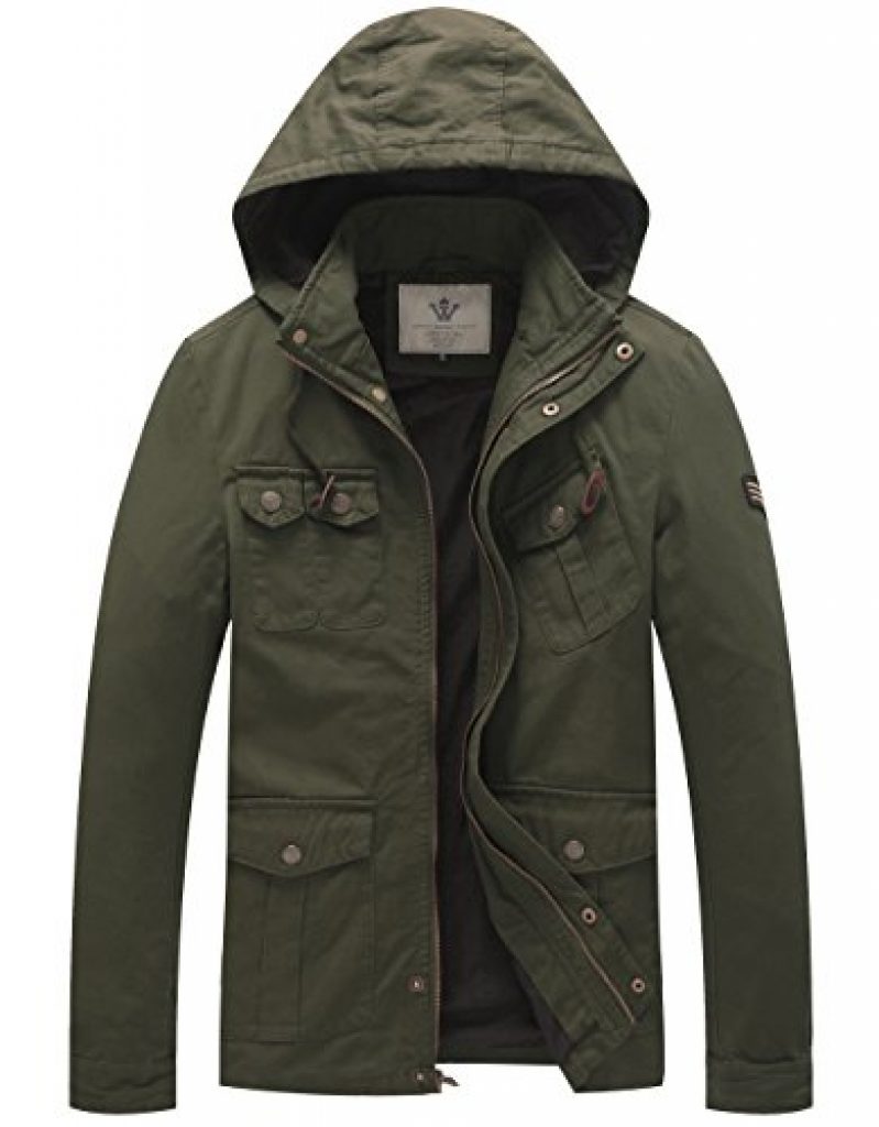 WenVen Men’s Hooded Cotton Military Jacket, Military Green